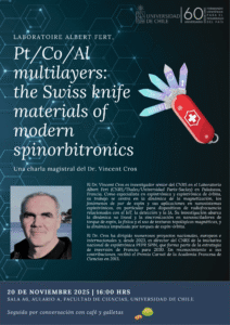 El Departamento de Física de la Facultad de Ciencias se complace en invitar a toda la comunidad universitaria a la charla magistral del Dr. Vincent Cros, un referente mundial en magnetismo y nanociencia.